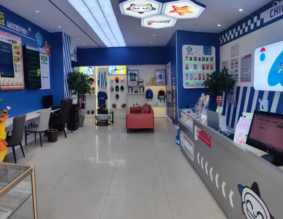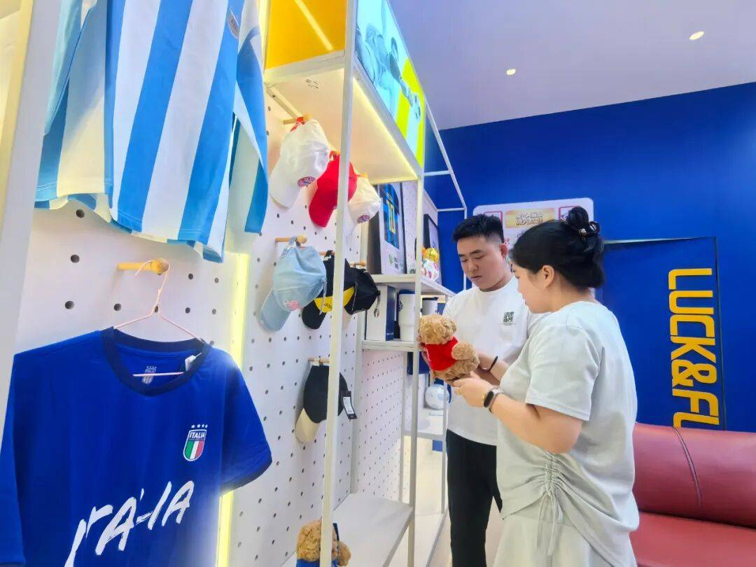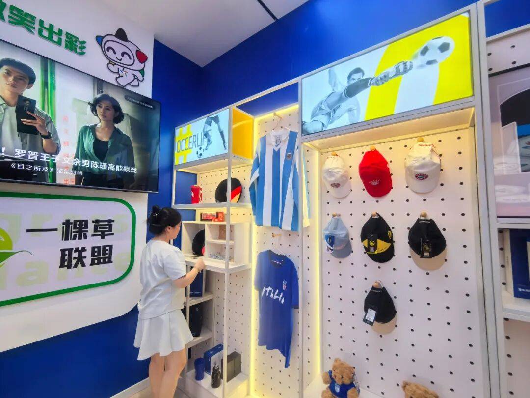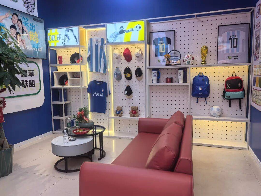 该店作为竞猜特殊主题店有一大亮点,靠墙设置的展示橱窗中陈列了多款足球相关纪念品,涵盖球衣、球帽、主题背包、运动水杯等,充满青春活力与竞技气息,引得不少年轻人驻足欣赏、拍照打卡。此外,店家还特别安排了舒适的沙发休息区和大屏幕电视,不只为购彩者,更面向广大体育爱好者提供了一处交流赛事、放松休憩的社交空间。