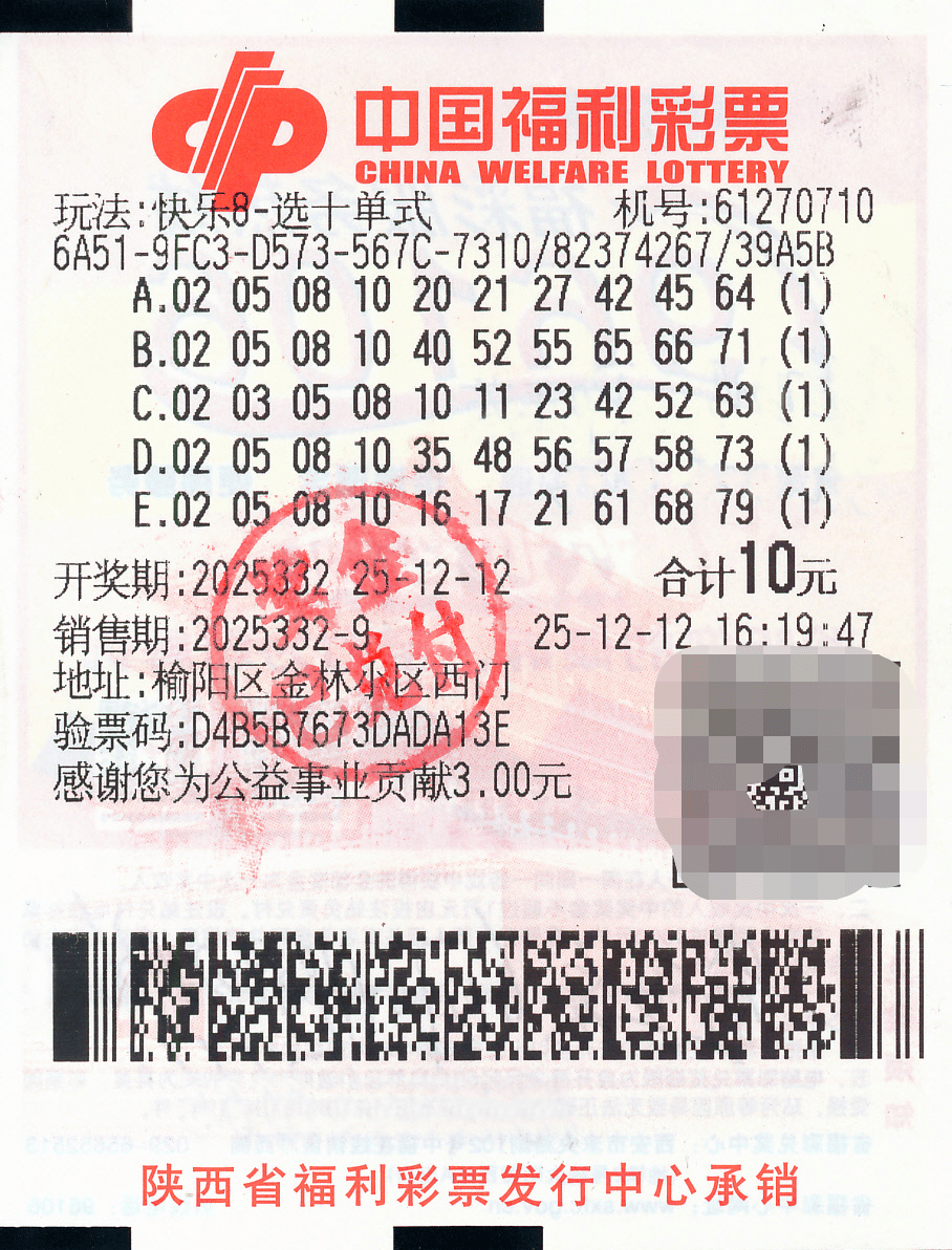 12月12日下午四点多,在榆阳区金林小区西门福彩第61270710号投注站,王先生打出了快乐8守号票,其中的一张5注单式票,复制于四点十九分。