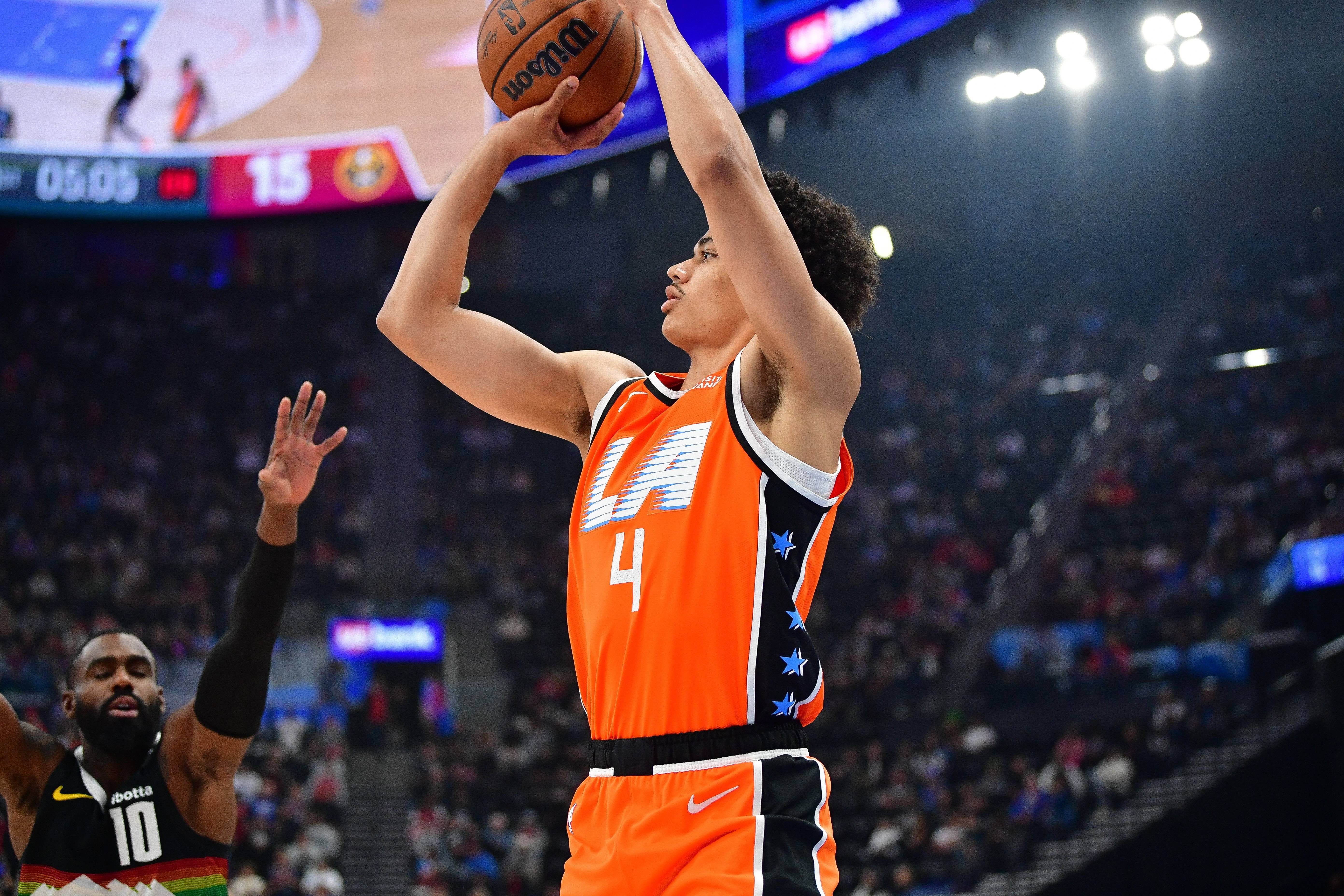 米勒是2023年的48号秀,他身高1米96,臂展达到惊人的2米13。米勒大学时期先在乔治梅森大学打了3年,之后转学到迈阿密大学,5年NCAA生涯场均得到12.8分,三分极其不稳定。米勒加盟快船后在G联赛有过高光,单赛季场均得分超过20分,他在夏季联赛和季前赛表现均十分出色。只是跻身轮换的机会真正到来时,米勒没有把握住。