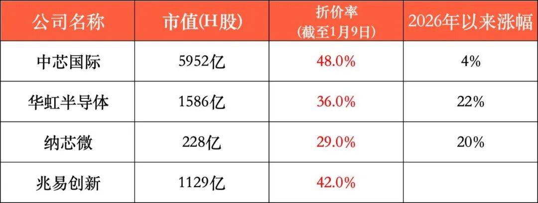 咱们看看隔壁的兄弟们,中芯国际、华虹半导体、纳芯微,这些AH两地上市的半导体同行,现在的折价率在35%左右,这中间存在一个套利水位差。