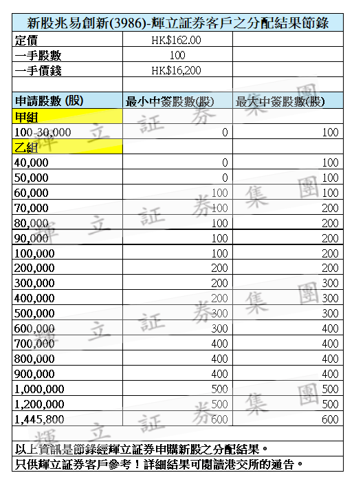 兆易创新是按照招股价上限定价162港元,一手市值16200港元。中签结果极其惨烈,甲组全是抽签,那些打新一手偷鸡的大部分都成了分母。乙组也是极难中签,乙三档才稳中1手,顶头槌也就给6手。