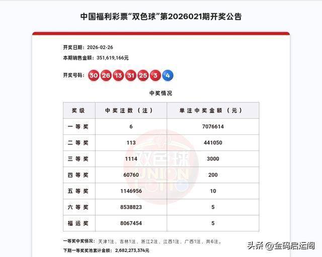 2026-03-01百家乐,百家乐官方网站,百家乐APP下载,百家乐游戏平台,百家乐网址,百家乐试玩,百家乐的玩法,百家乐技巧,百家乐公式,百家乐打法,百家乐电子,21点,德州扑克,快三,pk10,时时彩,北京赛车中国福利彩票双色球第26021期开奖结果揭晓。当期红球开出03、13、25、26、30、31,蓝球开出04。全国共中出6注一等奖,单注奖金707.6万元,被天津、吉林、浙江、江西、广西五地彩民分享;二等奖则开出113注,单注奖金44.1万元。